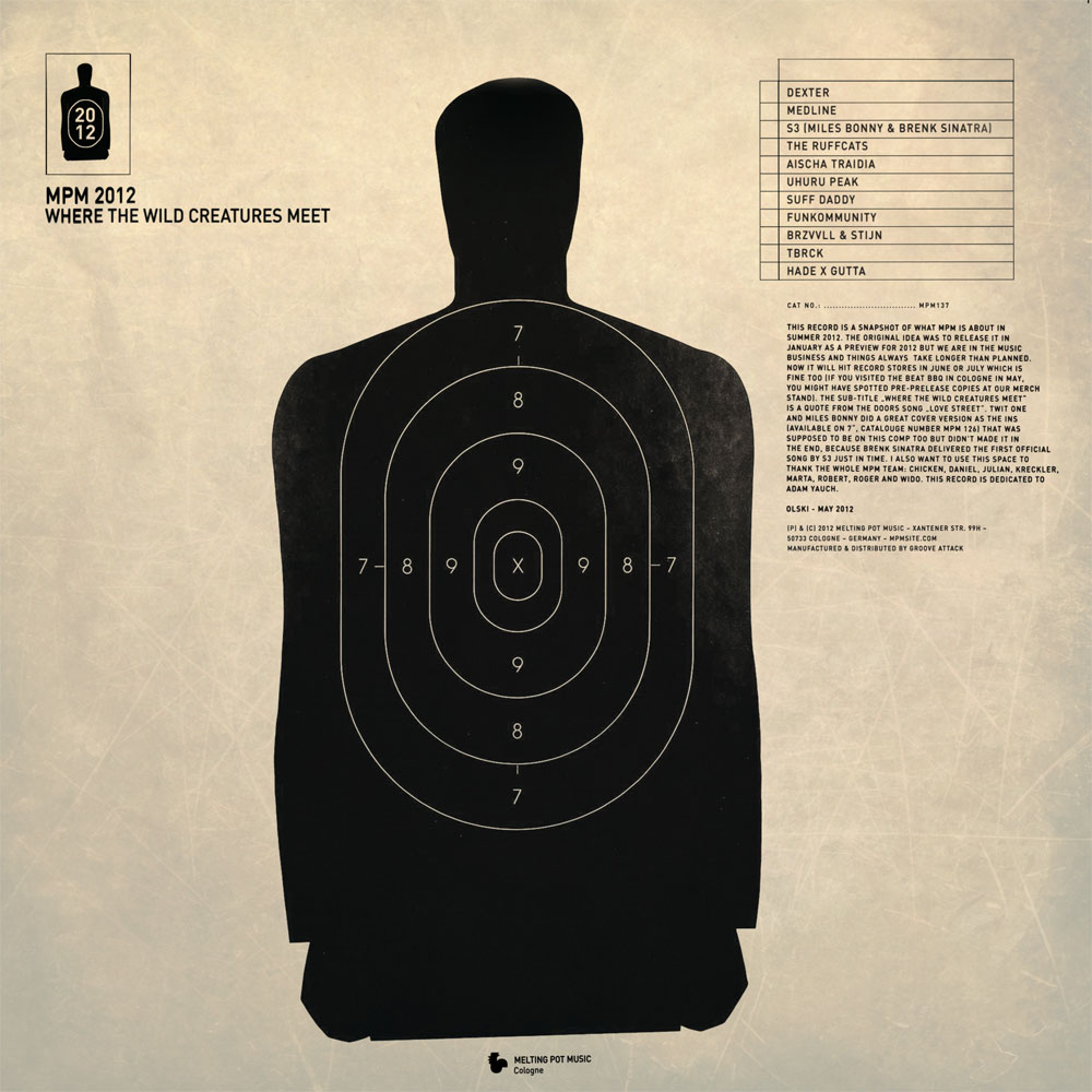 Here’s a brand new Melting Pot Music compilation just in time for the 4th of July (although it was originally set to drop on the 6th, today is a release day stateside), “MPM 2012: Where The Wild Creatures Meet” is an 11 track collection featuring material from A.U.D.D.A/MPM artists like Dexter, Suff Daddy, s3 (Miles Bonny x Brenk Sinatra), TBRCK (Tobrock), The Ruffcats, Medline, Funkommunity and more. This is perfect for Summer riding and Beat BBQ’s. Don’t sleep on it…