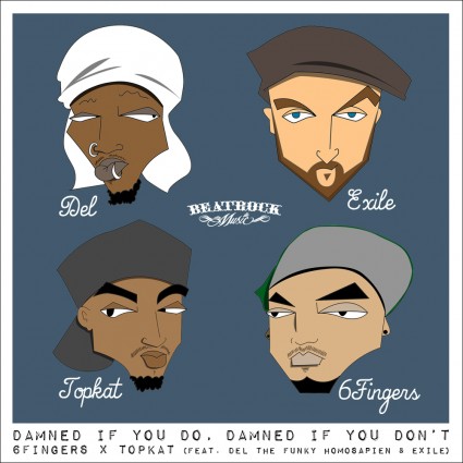 Here’s the latest release from Beatrock Music featuring PIK favorite and new addition, producer 6Fingers and Topkat’s “Damned If You Do, Damned If You Don’t” features Hiero’s Del The Funky Homosapien and Dirty Science’s Exile. Don’t sleep on this jawn or Beatrock Music…